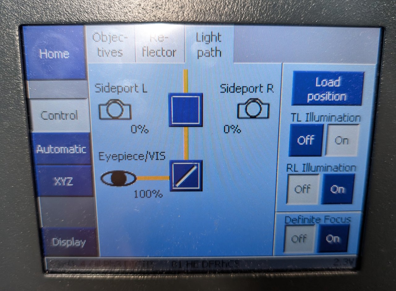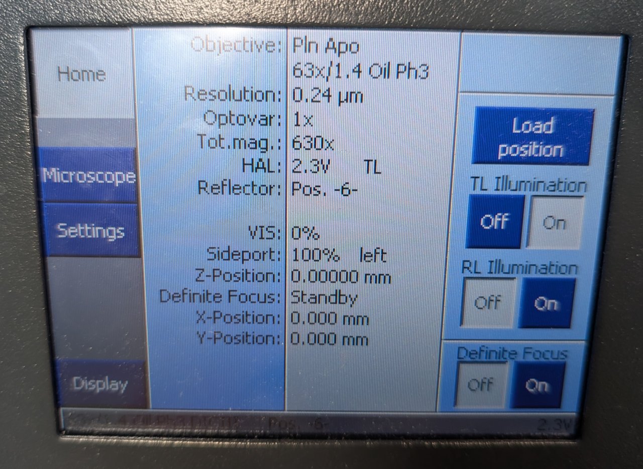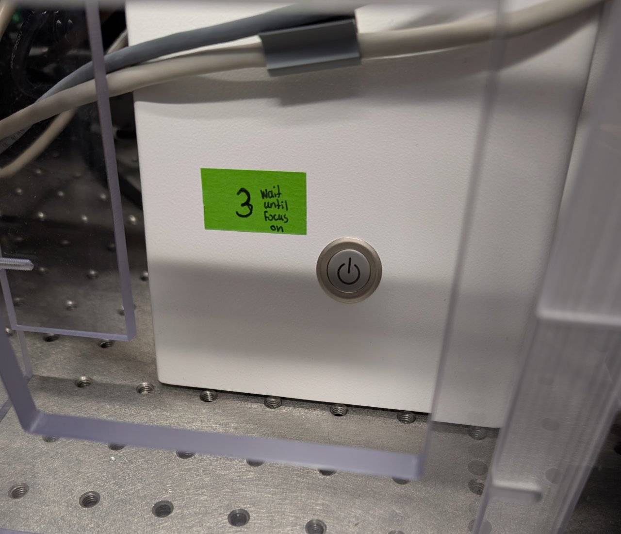 Turn on the focus controller for the Zeiss’s Definite Focus system.