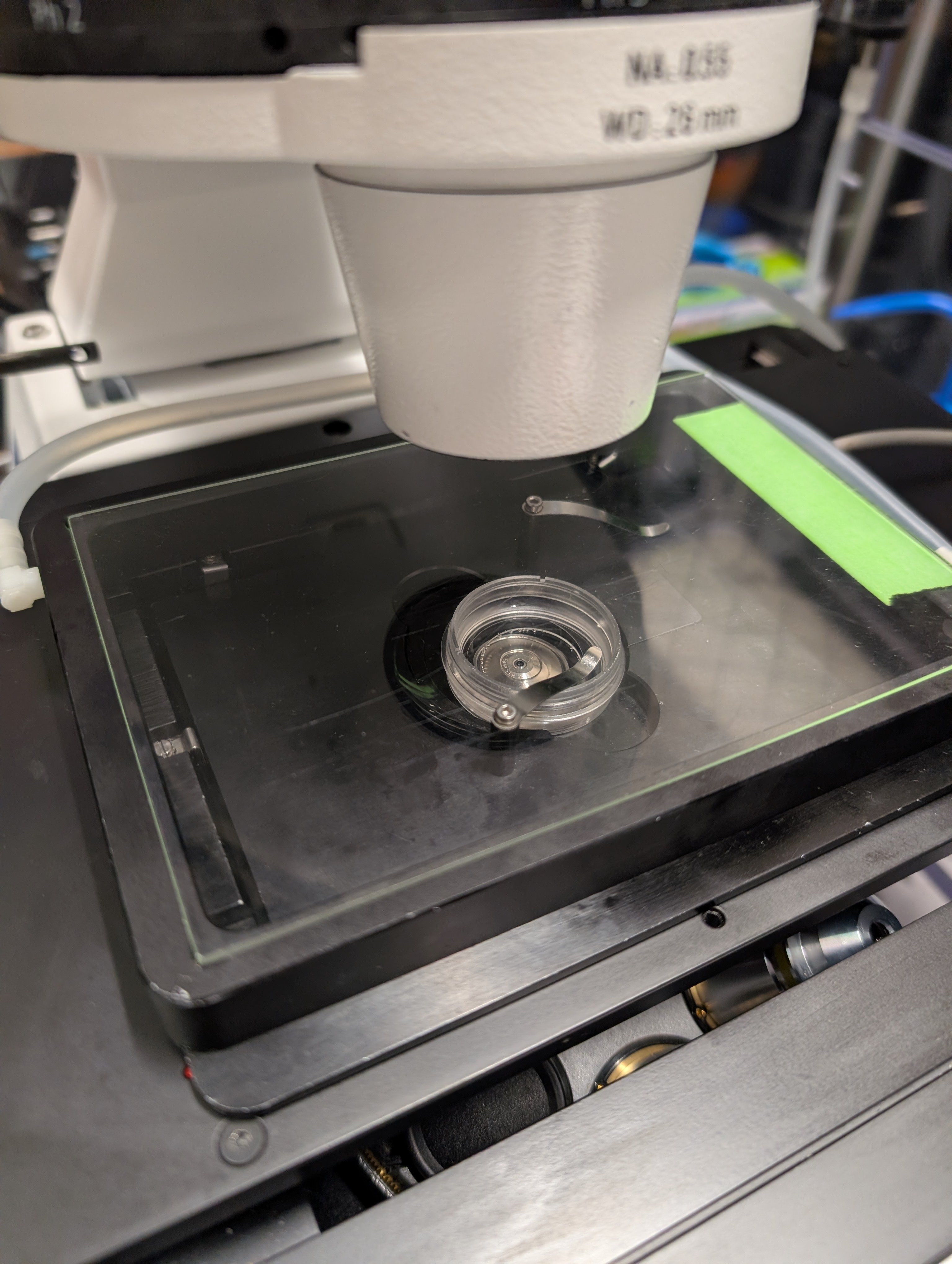 In this section we will use a Zeiss Axio Observer 7 widefield fluorescence microscope to perform live cell imaging of mitochondria in U2OS cells. The cells have been modified to express StayGold fluorescent protein that is targeting the mitochondrial matrix.