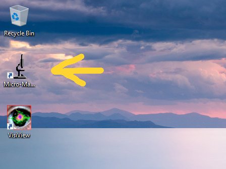 Find the shortcut to Micro-Manager on the desktop and double click it.